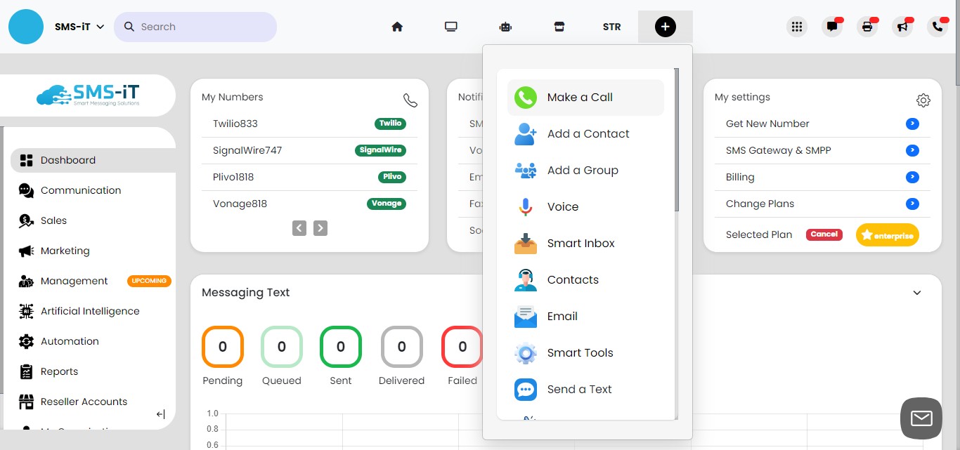 Record: Use this to record a new message directly in the SMS-iT system using your microphone.